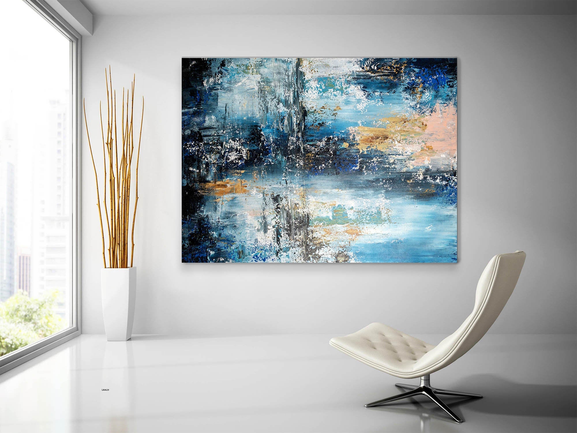 Another key consideration when choosing a blue abstract painting is how it complements the existing decor of the room. Pay attention to the size of the painting in relation to the size of the wall and furniture, and consider how the colors and textures of the painting interact with the surrounding elements. A bold and vibrant painting may be a striking focal point in a minimalist space, while a more subdued and muted painting might blend well with a rustic or bohemian aesthetic.