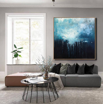 One way to showcase navy blue abstract paintings in home design is to create a focal point in a room. A large-scale painting can be hung above a sofa or mantle, creating a bold and eye-catching statement. Alternatively, a smaller work can be placed on a shelf or table, adding a touch of visual interest to an otherwise mundane space.