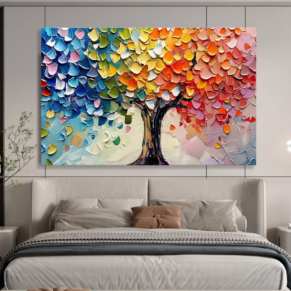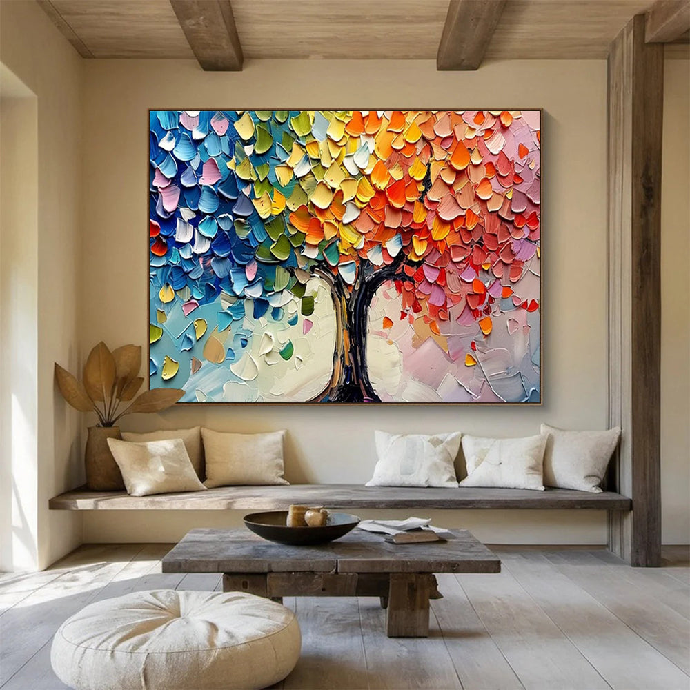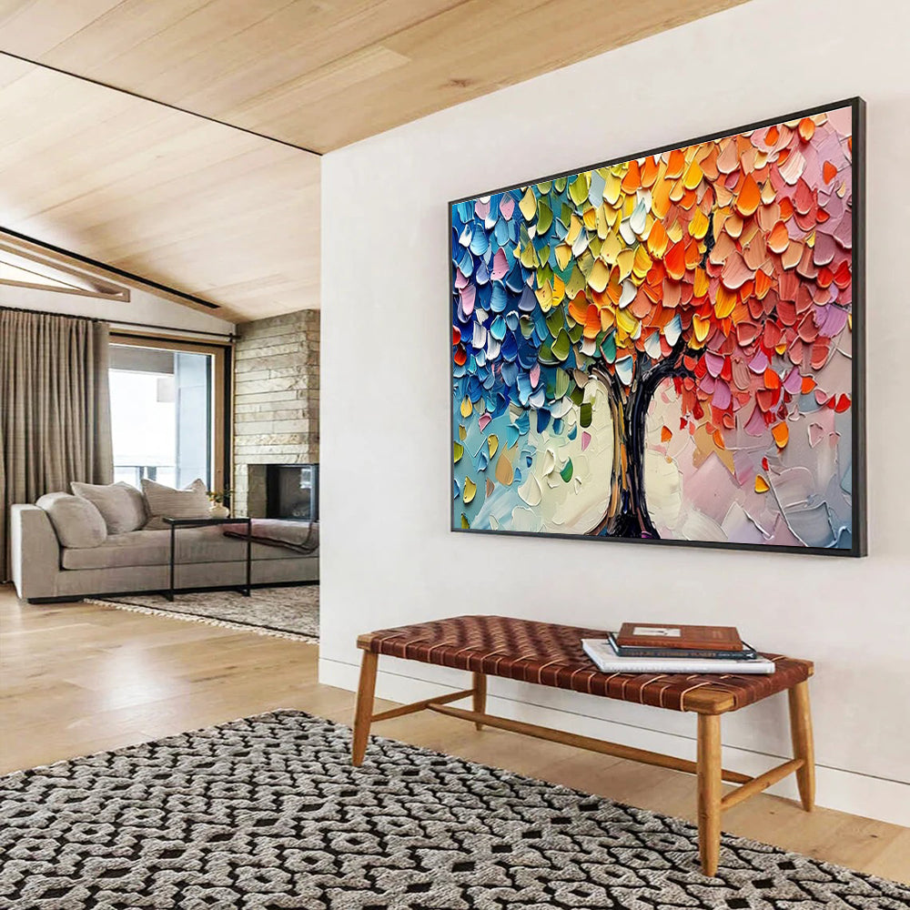 Dreaming of a world where trees wear all the colors of joy, the artist spent months mixing hues to create this vibrant tree. They pressed and swirled paint, making each leaf a unique color story. The goal was to spark childlike wonder in viewers. It’s ideal for a kindergarten classroom, where it can inspire young imaginations, or a bohemian - style living room, adding a touch of artistic whimsy. This painting isn’t just a tree; it’s a rainbow - hued journey into creativity, brightening minds and spaces.