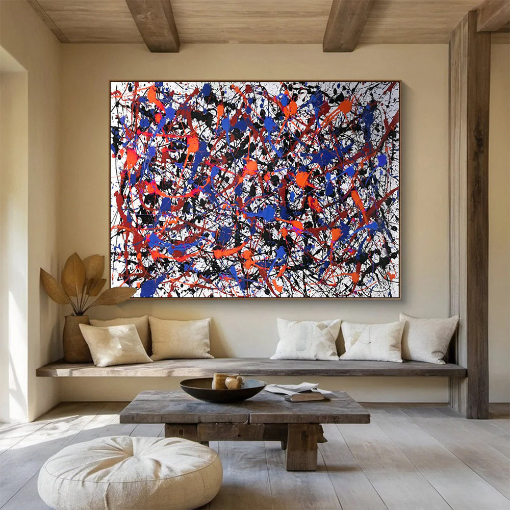 Make a statement in modern art galleries with this hand - painted white background drip painting. Vibrant splashes of blue, red, and black on a white canvas showcase abstract expressionism at its best. Each drip is a deliberate artistic choice, inviting viewers to explore emotions and interpretations. Ideal for galleries, it’s a centerpiece that sparks conversations and celebrates artistic freedom. Packaging: Each artwork is professionally rolled and secured in a durable hard-shell tube for safe transit with a 2–3 inch white border around the painting for easy stretching or framing at your local shop. Delivery Timeline: Expect your painting within 7–12 business days including 3–5 days for handcrafting by our artists and 5–7 days for worldwide delivery via UPS or FedEx with a tracking number provided immediately upon shipping.