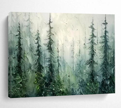 Hand - painted Forest Mist Oil Painting for Creating a Tranquil Atmosphere in Living Room Corners LargeART1600
