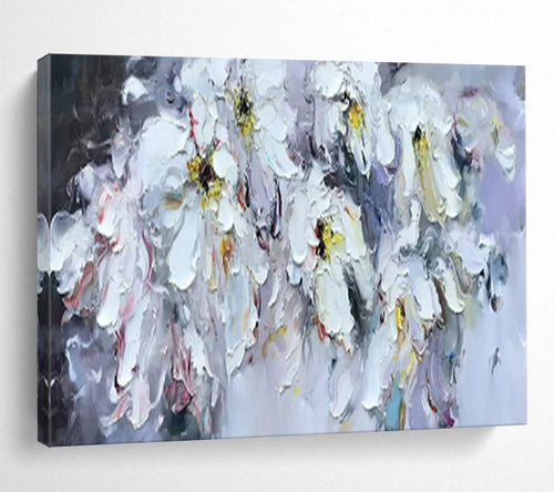 Hand - painted Large - dimension White Flowers with Colorful Accents Acrylic Art for Bright Living Rooms LargeART1763