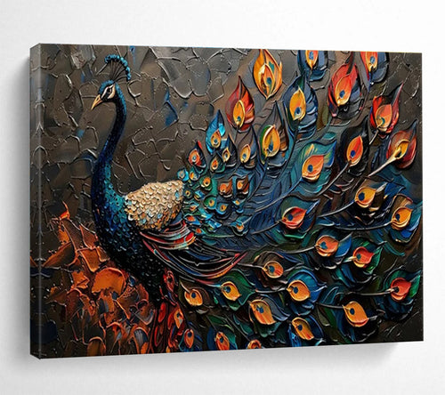 Textured Peacock “Colorful Plumage” Painting on Canvas, Ornate Wildlife Art DKH807