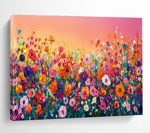 Colorful Flower Field Abstract Painting on Canvas - “Sunset Blooms” DKH680
