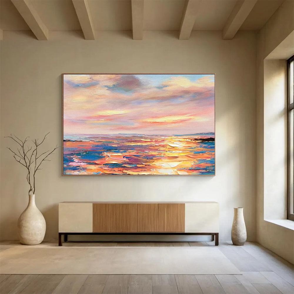 Escape to coastal serenity with this hand - painted pastel sunset seascape. Soft hues of pink, orange, and purple blend over the ocean, creating a dreamy, calming scene. Ideal for bedroom retreats, it transforms your space into a beachside haven. Hand - painted to capture the beauty of sunsets, it invites relaxation and peaceful dreams. Packaging: Each artwork is professionally rolled and secured in a durable hard-shell tube for safe transit with a 2–3 inch white border around the painting for easy stretching or framing at your local shop. Delivery Timeline: Expect your painting within 7–12 business days including 3–5 days for handcrafting by our artists and 5–7 days for worldwide delivery via UPS or FedEx with a tracking number provided immediately upon shipping.