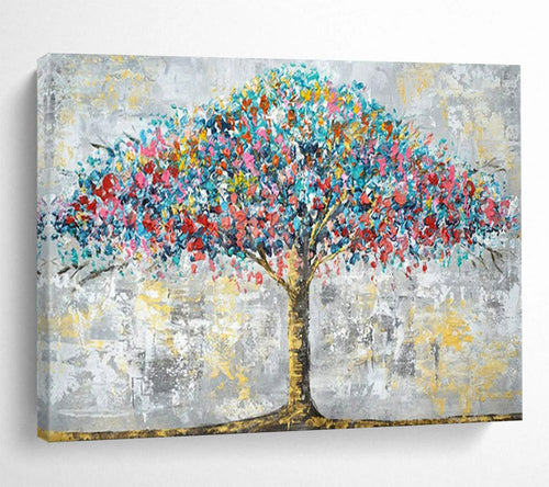 Hand - painted Colorful Tree Oil Painting for a Cozy Bedroom Ambiance LargeART1598