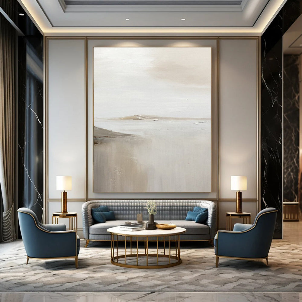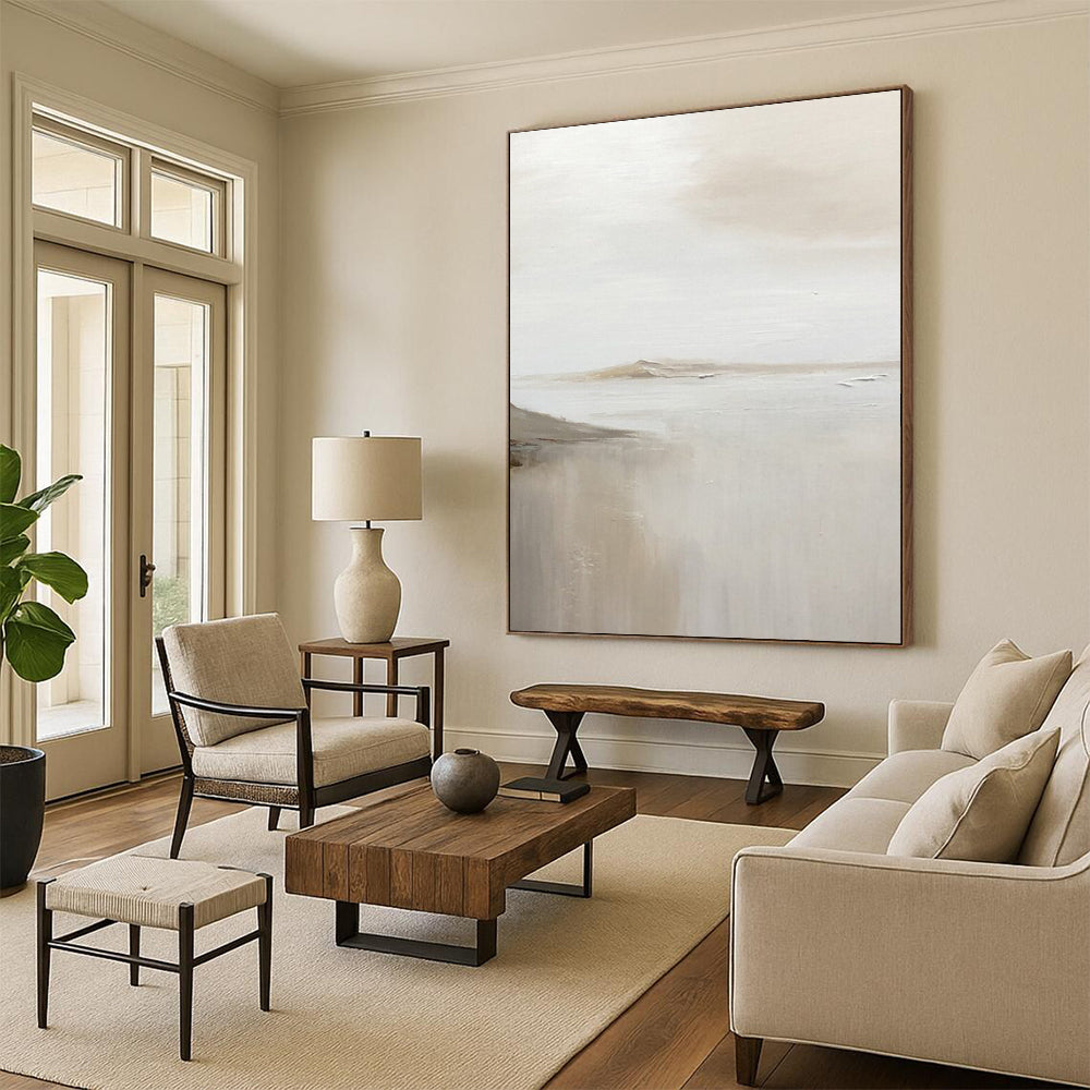 Drawn from misty morning waters, the artist used light brushstrokes for mystery. Channeling Hiroshi Sugimoto’s seascapes, it’s ideal for a minimalist bedroom or reading nook. Add it, and let your space get lost in gentle mystery.