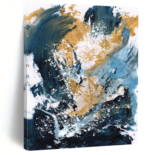 Gold & Blue Abstract Splash – Energetic Acrylic Painting DTP234