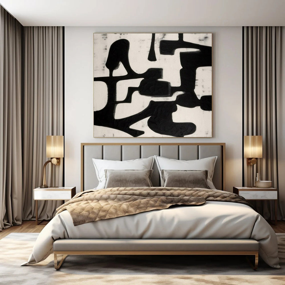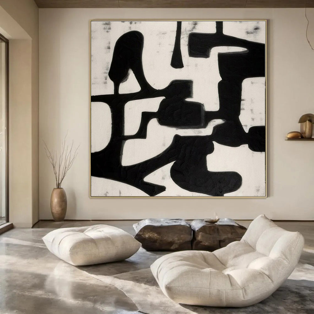The artist aimed to explore contrast and form with just two colors. They painted bold, irregular black shapes on a white canvas, letting the negative space tell part of the story. Spending hours sketching abstract forms, they wanted to create something that makes you look twice. This piece stands out on a gallery wall, adding a bold, modern touch, or in a study, encouraging deep thinking and creativity. Packaging: Each artwork is professionally rolled and secured in a durable hard-shell tube for safe transit with a 2–3 inch white border around the painting for easy stretching or framing at your local shop. Delivery Timeline: Expect your painting within 7–12 business days including 3–5 days for handcrafting by our artists and 5–7 days for worldwide delivery via UPS or FedEx with a tracking number provided immediately upon shipping.
