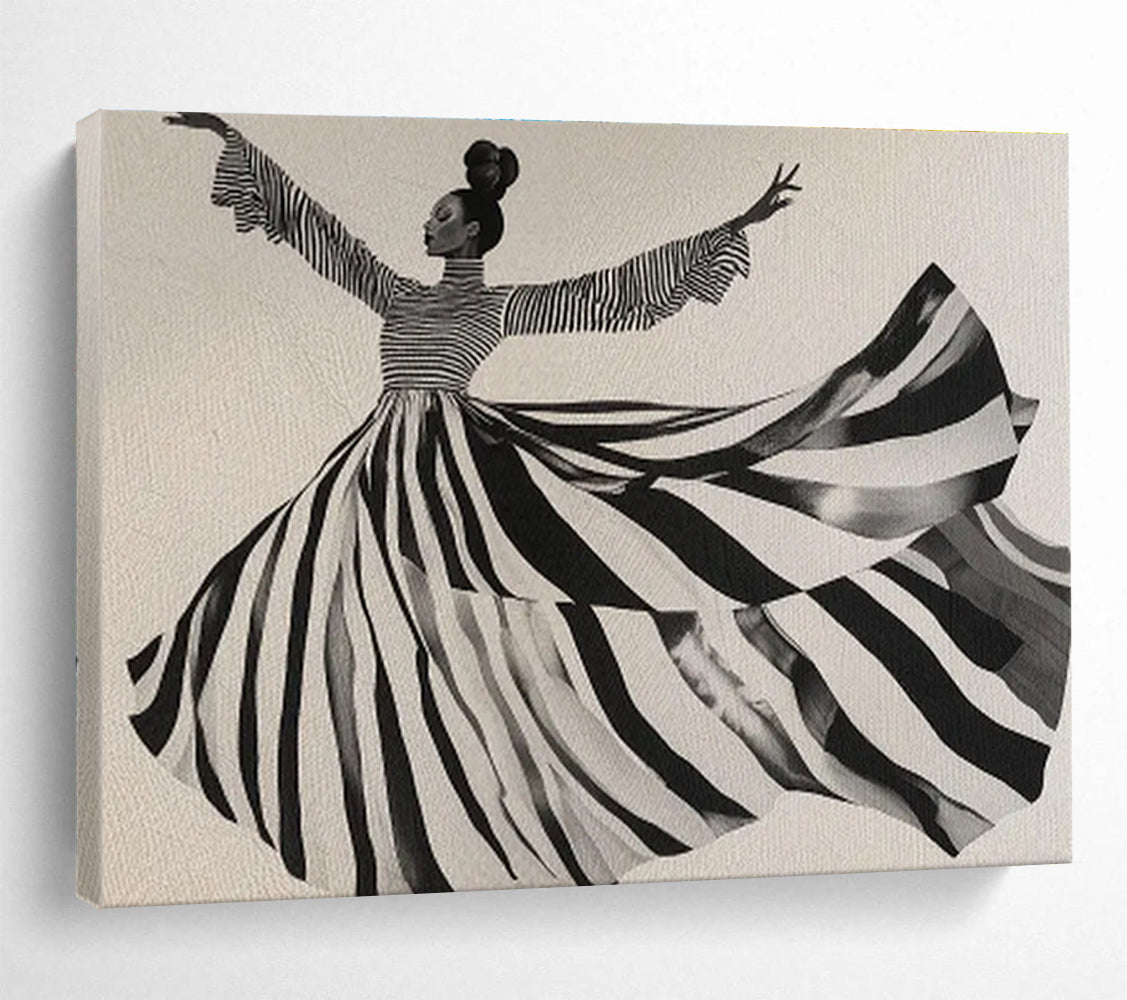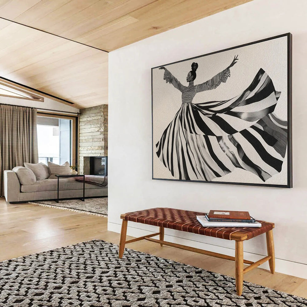 The artist was inspired by the grace of a dancer in motion, translating the fluid lines of a striped dress into bold contrasts. They spent weeks studying how fabric flows, then used thick and thin brushstrokes to capture the energy of movement. It’s a celebration of rhythm—perfect for an Art Deco lounge to add a touch of drama or a dance studio to inspire creativity. Each stroke holds the beat of the dance, turning your space into a stage of elegance. Packaging: Each artwork is professionally rolled and secured in a durable hard-shell tube for safe transit with a 2–3 inch white border around the painting for easy stretching or framing at your local shop. Delivery Timeline: Expect your painting within 7–12 business days including 3–5 days for handcrafting by our artists and 5–7 days for worldwide delivery via UPS or FedEx with a tracking number provided immediately upon shipping.