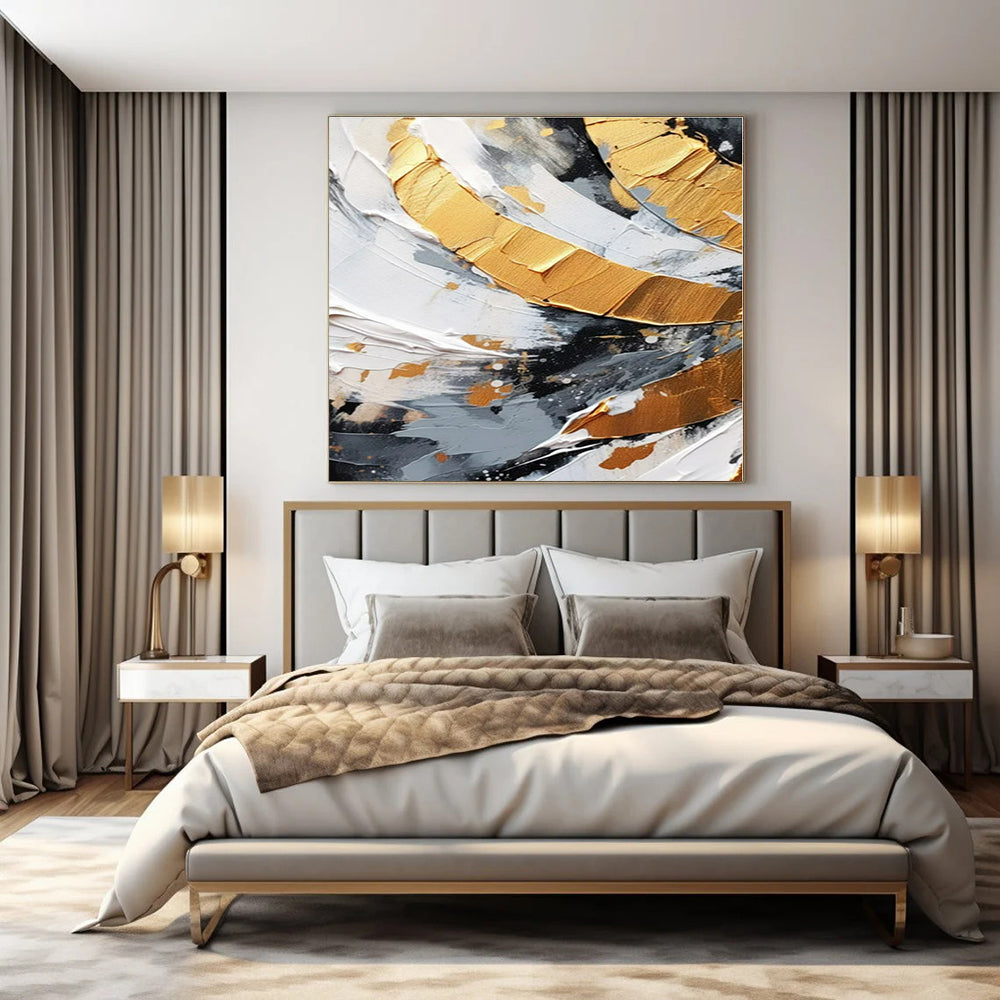 The artist was drawn to the raw, edgy feel of industrial spaces, but wanted to add a touch of luxury. They used bold black and white as the base, like the concrete and steel of a loft, then swirled in gold to represent the unexpected beauty found in those spaces – a rusted beam catching the light, a polished metal surface. The thick, textured strokes and the way the gold weaves through the black and white create a dynamic, almost chaotic yet controlled composition. It’s perfect for an industrial - chic loft, enhancing the raw aesthetic with a touch of glamour, or an art - forward gallery, where it can stand out with its bold contrast. The artist worked with energy, slapping paint on the canvas and then refining it, capturing the spirit of industrial spaces – rough, but full of hidden beauty. Each swirl of gold is a discovery, a reminder that even in the most unexpected places, there’s something to celebrate. Packaging: Each artwork is professionally rolled and secured in a durable hard-shell tube for safe transit with a 2–3 inch white border around the painting for easy stretching or framing at your local shop. Delivery Timeline: Expect your painting within 7–12 business days including 3–5 days for handcrafting by our artists and 5–7 days for worldwide delivery via UPS or FedEx with a tracking number provided immediately upon shipping.