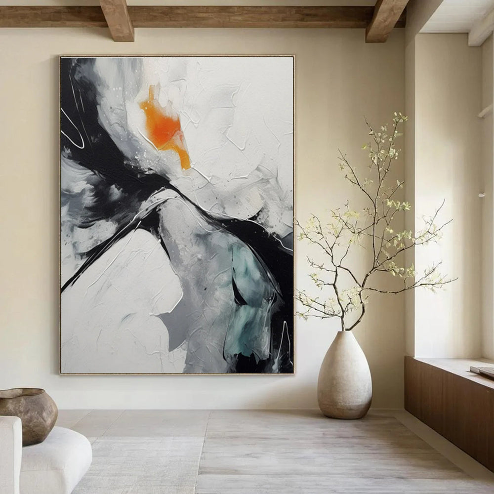 Black, White & Orange Abstract Painting, Ideal for Modern Living Room & Creative Studio LargeART1464