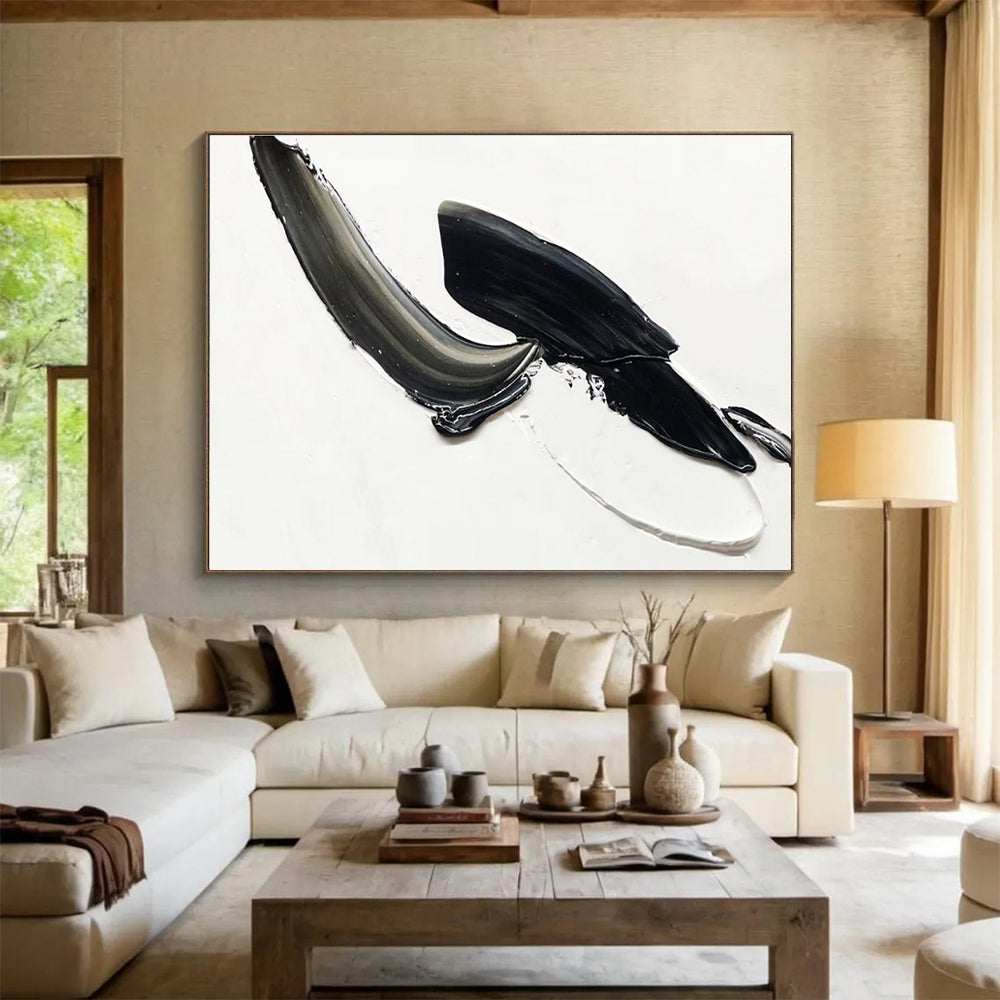 Inspired by movement and energy, the artist used fluid, swirling black and white paint to create a dynamic, abstract pattern that seems to move across the canvas. They aimed to bring a sense of energy and modernity to any space. Ideal for a gym, adding a motivational backdrop, or a creative studio, inspiring dynamic thinking. The artist hoped viewers would feel the energy and movement, being inspired to take action. This work is a burst of energy, a dynamic slice of modern abstract art.