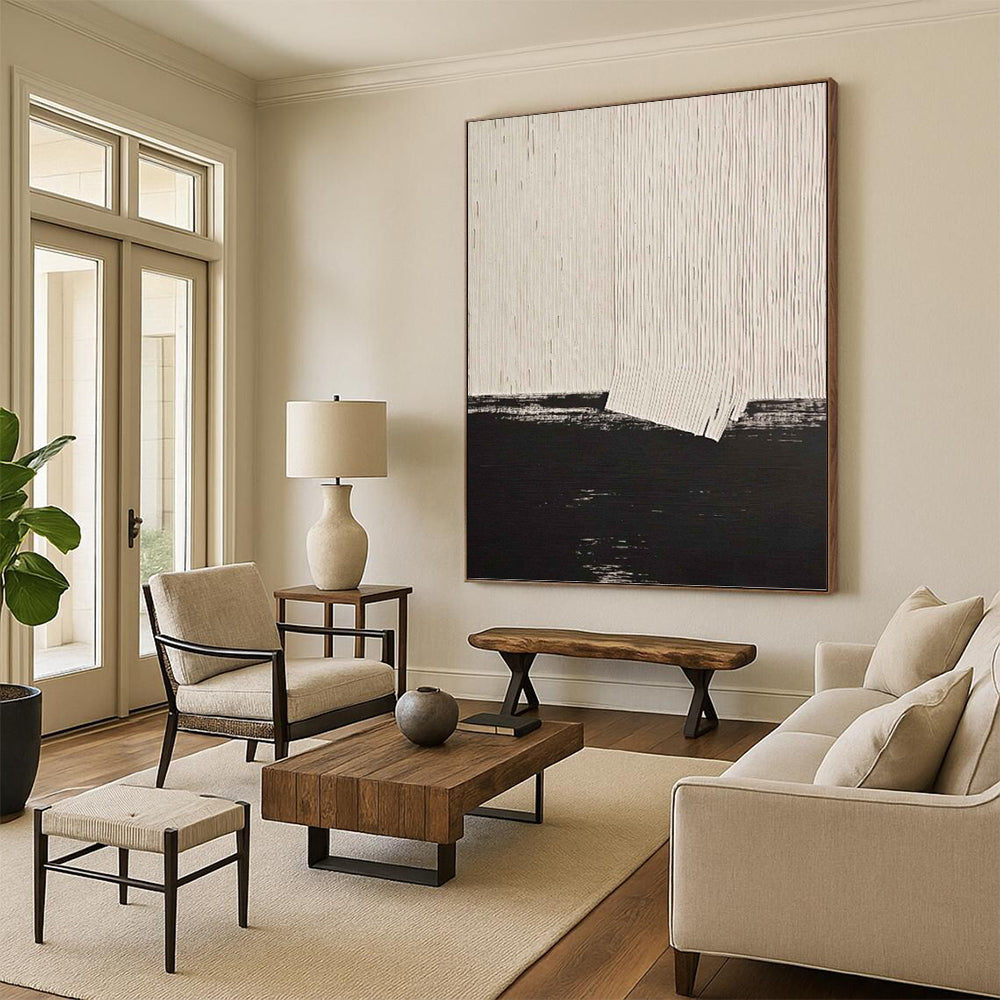 Inspired by the stark, graphic style of Ellsworth Kelly, this piece uses bold blacks and whites with textured layers. The artist carefully placed acrylic strokes, creating a dynamic interplay of light and shadow. They were drawn to the power of contrast, wanting to make a strong yet simple visual statement. Ideal for a contemporary office to make a bold impression or a gallery - like living room to showcase modern art. Let the high - contrast textures define your space—own a piece of modern minimalism.
