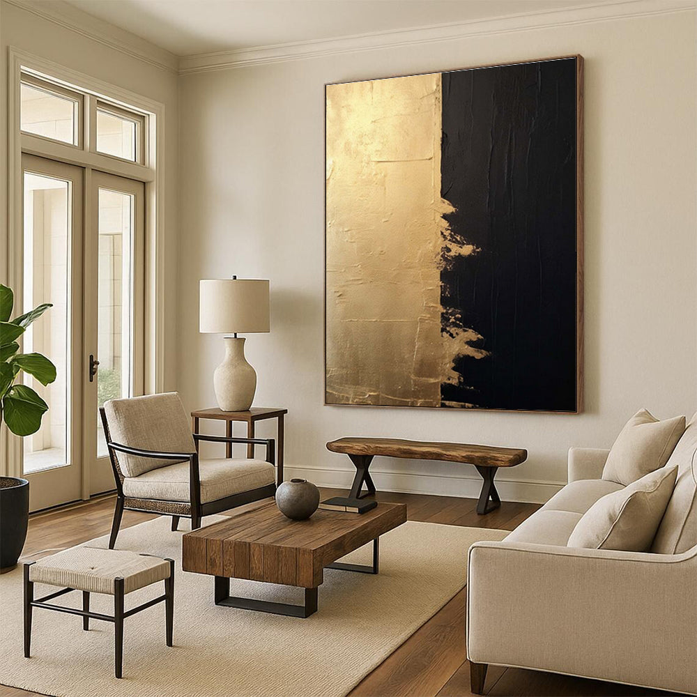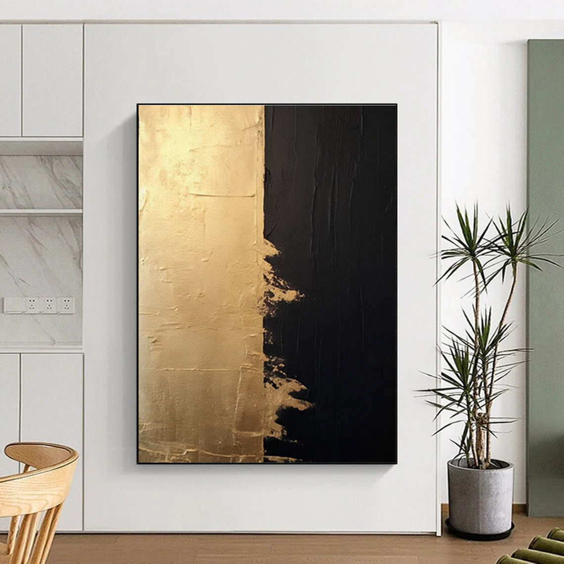 The artist was inspired by the contrast between luxury and simplicity. They wanted to create a piece that feels both opulent and minimalist. Using a thick, textured gold on one side and a smooth, deep black on the other, with a bit of overlap that looks almost like a happy accident, they achieved a striking balance. In an elegant dining room, it adds a touch of sophistication and drama, making dinner parties feel more special. In an upscale boutique, it complements the high - end fashion, adding an artistic touch to the shopping experience. The artist played with the textures, making sure the gold had a rich, almost metallic sheen, and the black was deep and matte, creating a visual and tactile contrast that draws you in. Packaging: Each artwork is professionally rolled and secured in a durable hard-shell tube for safe transit with a 2–3 inch white border around the painting for easy stretching or framing at your local shop. Delivery Timeline: Expect your painting within 7–12 business days including 3–5 days for handcrafting by our artists and 5–7 days for worldwide delivery via UPS or FedEx with a tracking number provided immediately upon shipping.