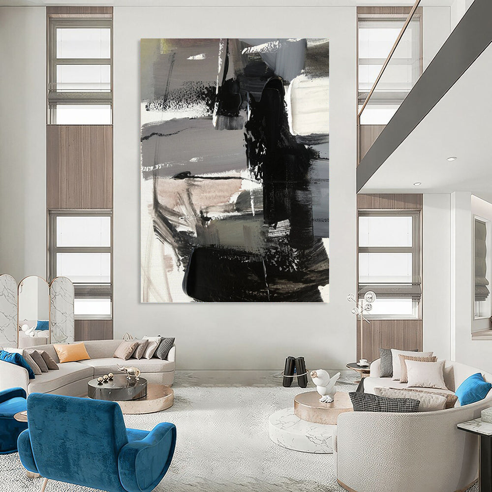 “Grey and Black Minimalist Abstract” - Grey, Black, White Abstract Art on Canvas DKH1263