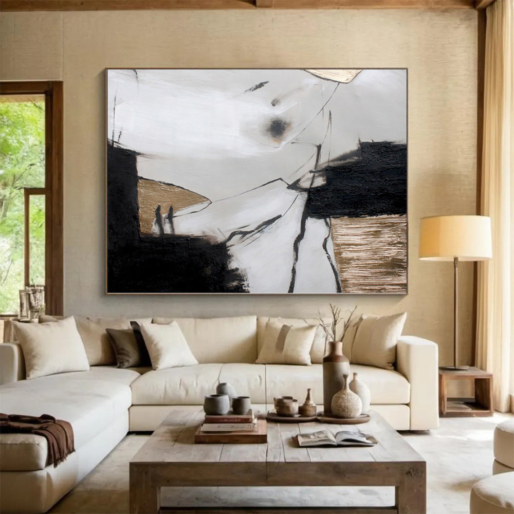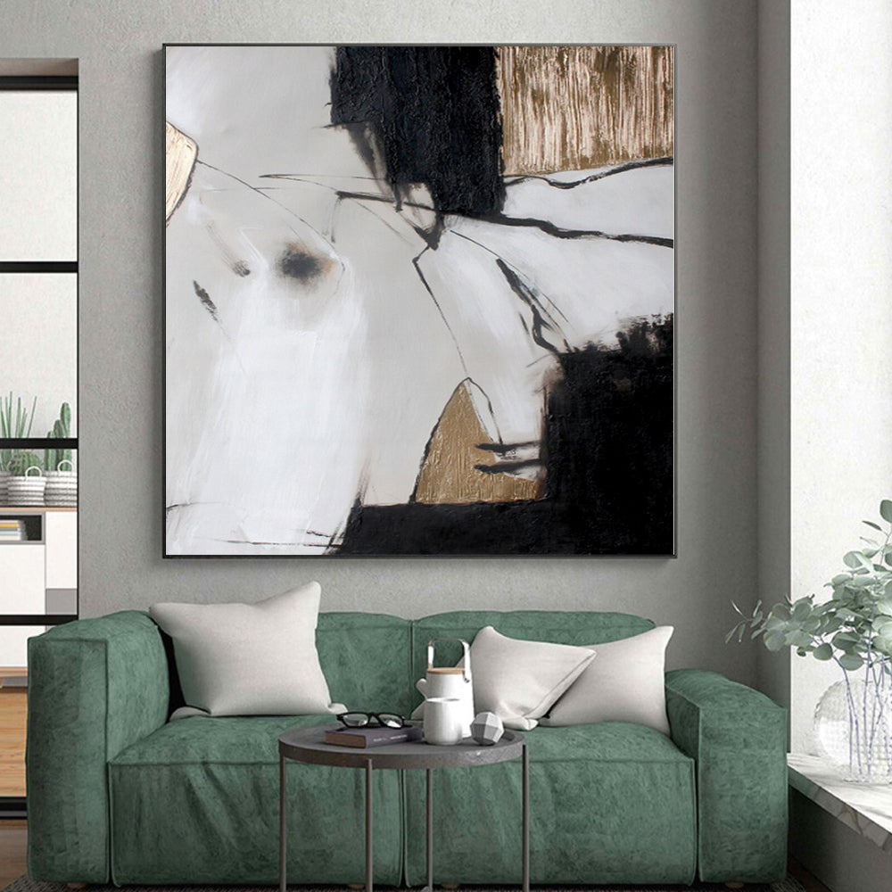 This oversized black - white minimalist abstract acrylic art has a profound story. The artist was inspired by the simplicity and complexity of urban structures. They painstakingly drew and filled the geometric shapes, using the contrast of black and white to convey a sense of order and mystery. Each line and shape is carefully calculated. In an office, it can bring a touch of modern sophistication, as if the artist's exploration of urban minimalism is unfolding in the workspace, inspiring focus and creative thinking. Packaging: Each artwork is professionally rolled and secured in a durable hard-shell tube for safe transit with a 2–3 inch white border around the painting for easy stretching or framing at your local shop. Delivery Timeline: Expect your painting within 7–12 business days including 3–5 days for handcrafting by our artists and 5–7 days for worldwide delivery via UPS or FedEx with a tracking number provided immediately upon shipping.