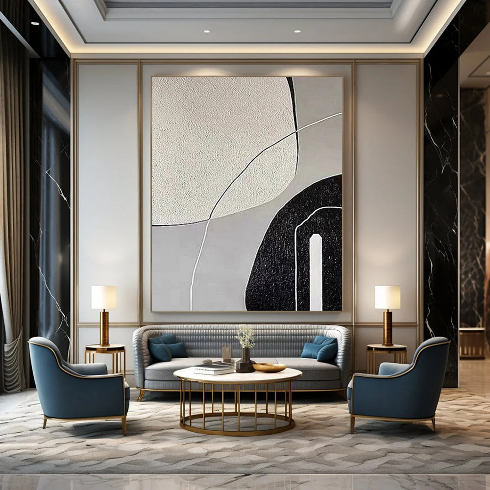Fascinated by the interplay of textured shapes, the artist created a composition with contrasting textures and simple forms. The smooth and rough surfaces interact to create visual interest. This piece fits a minimalist living room, adding a touch of subtle complexity, or a modern office, providing a visually engaging backdrop. Let the textured shape interplay inspire a sense of curiosity and exploration.