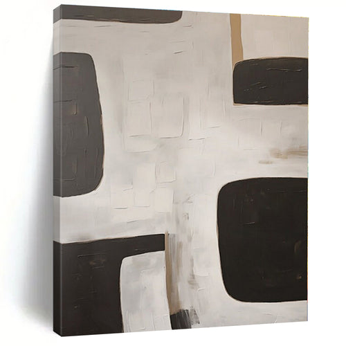 Black & White Geometric Block Abstract Painting, Ideal for Modern Minimalist Office & Monochrome Living Room LargeART1374