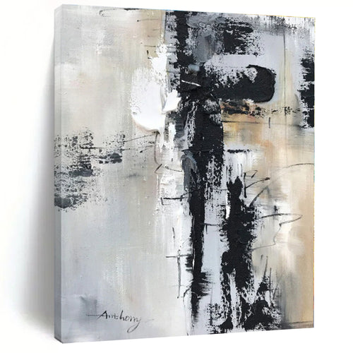 Oversized Gray - Black Abstract Art for Minimalist Study & Modern Living Room LargeART0501