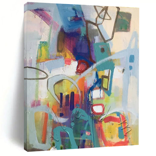 Colorful Collage Abstract Canvas Painting, Suited for Eclectic Home Office & Vibrant Art Gallery LargeART1096