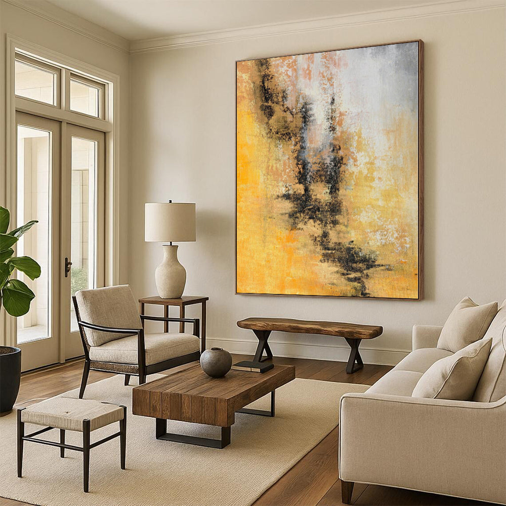Brighten your kitchen with this hand - painted large - scale Warm Yellow Abstract Texture acrylic art. The expansive canvas, filled with sunny yellows and subtle textures, brings cheer to meal times. Its generous dimensions create a lively focal point, ideal for a roomy kitchen area. Packaging: Each artwork is professionally rolled and secured in a durable hard-shell tube for safe transit with a 2–3 inch white border around the painting for easy stretching or framing at your local shop. Delivery Timeline: Expect your painting within 7–12 business days including 3–5 days for handcrafting by our artists and 5–7 days for worldwide delivery via UPS or FedEx with a tracking number provided immediately upon shipping.