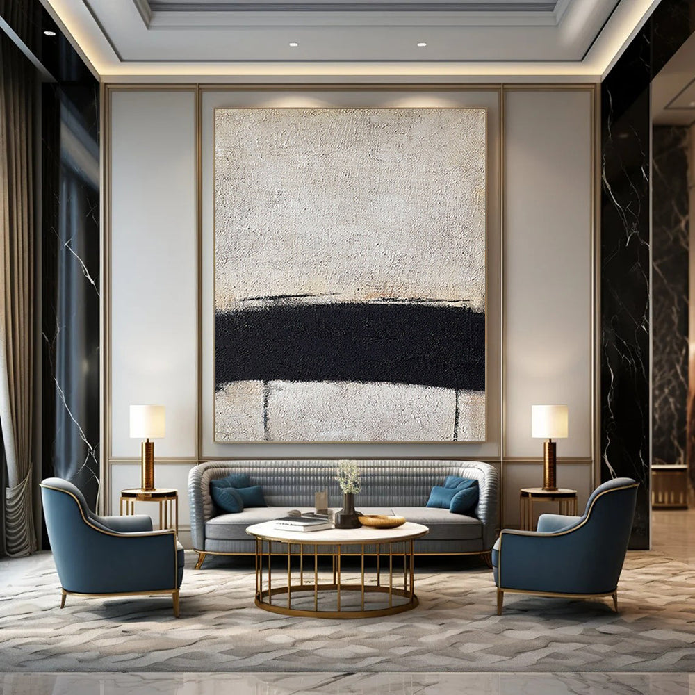 “Black Divide” – Stark black band across textured gray - white canvas DTP353