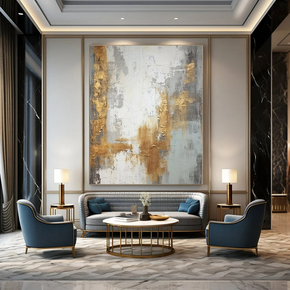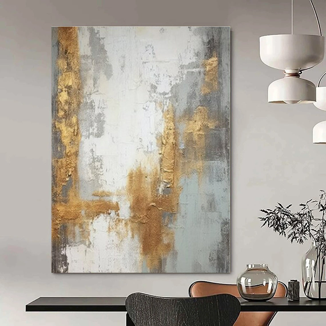 Inspired by the simplicity and elegance of minimalist design, the artist used a palette of gray, gold, and white to create a calming, yet sophisticated abstract piece. The soft, muted tones and gentle brushstrokes make it perfect for a minimalist bedroom, where it can promote relaxation and restful sleep, or a sophisticated lounge, adding a touch of understated luxury. The artist painted slowly and deliberately, focusing on creating smooth gradients and subtle textures. The gold accents were applied sparingly, like precious highlights, to add a touch of warmth and interest. This painting is a testament to the beauty of simplicity and the power of a well - chosen color palette. Packaging: Each artwork is professionally rolled and secured in a durable hard-shell tube for safe transit with a 2–3 inch white border around the painting for easy stretching or framing at your local shop. Delivery Timeline: Expect your painting within 7–12 business days including 3–5 days for handcrafting by our artists and 5–7 days for worldwide delivery via UPS or FedEx with a tracking number provided immediately upon shipping.