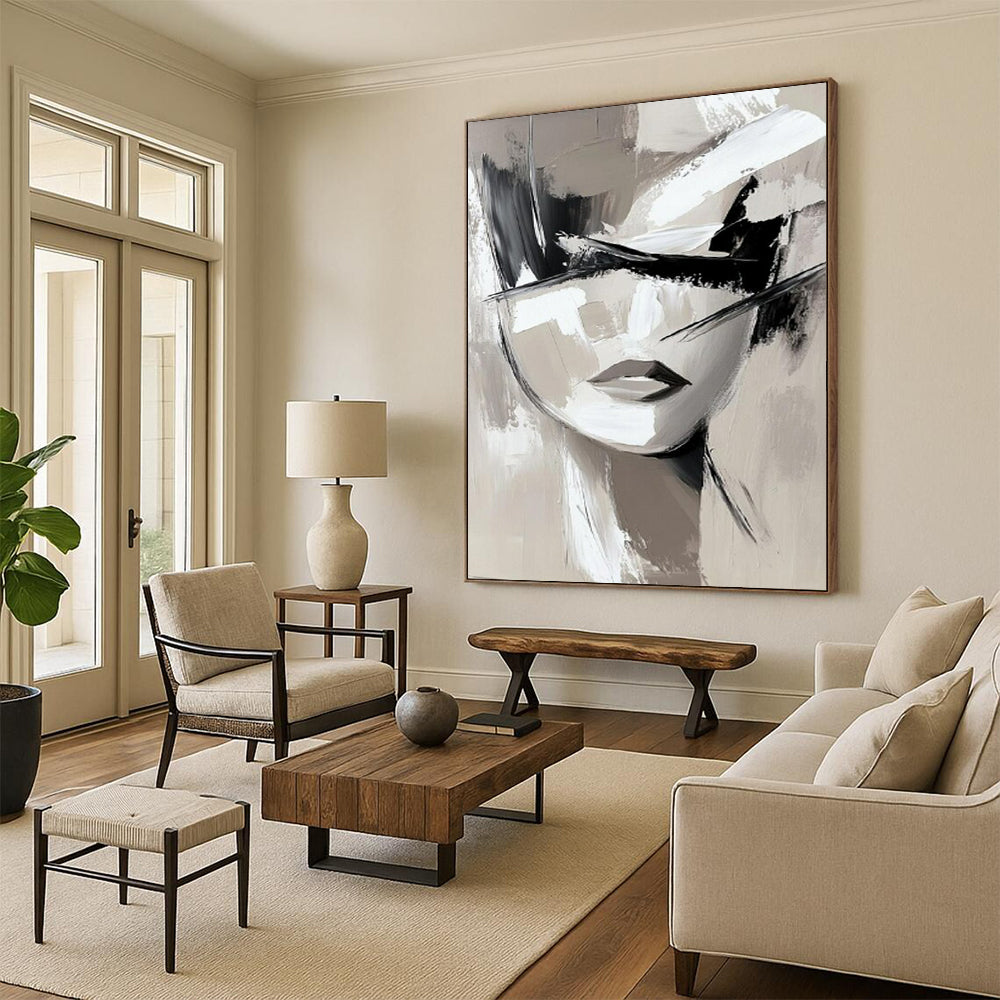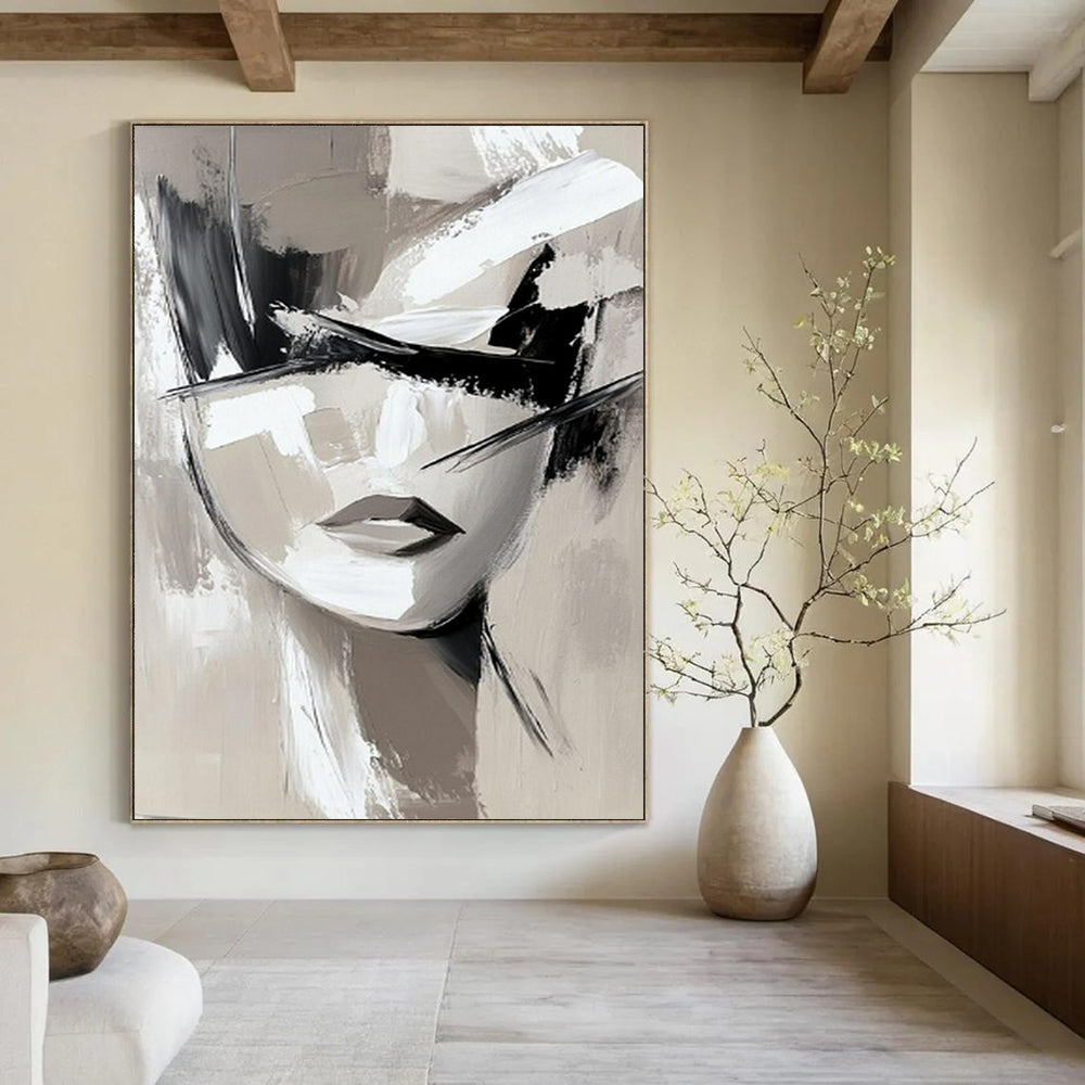 The artist was exploring the essence of human features, stripping away details to focus on form and mood. Working with a limited gray palette, they used bold brushstrokes to create a sense of mystery. Each stroke was a decision to reveal or conceal, aiming to evoke curiosity. It’s a perfect fit for a modern bedroom’s sleek aesthetic or a chic office needing a touch of artistic intrigue. Packaging: Each artwork is professionally rolled and secured in a durable hard-shell tube for safe transit with a 2–3 inch white border around the painting for easy stretching or framing at your local shop. Delivery Timeline: Expect your painting within 7–12 business days including 3–5 days for handcrafting by our artists and 5–7 days for worldwide delivery via UPS or FedEx with a tracking number provided immediately upon shipping.