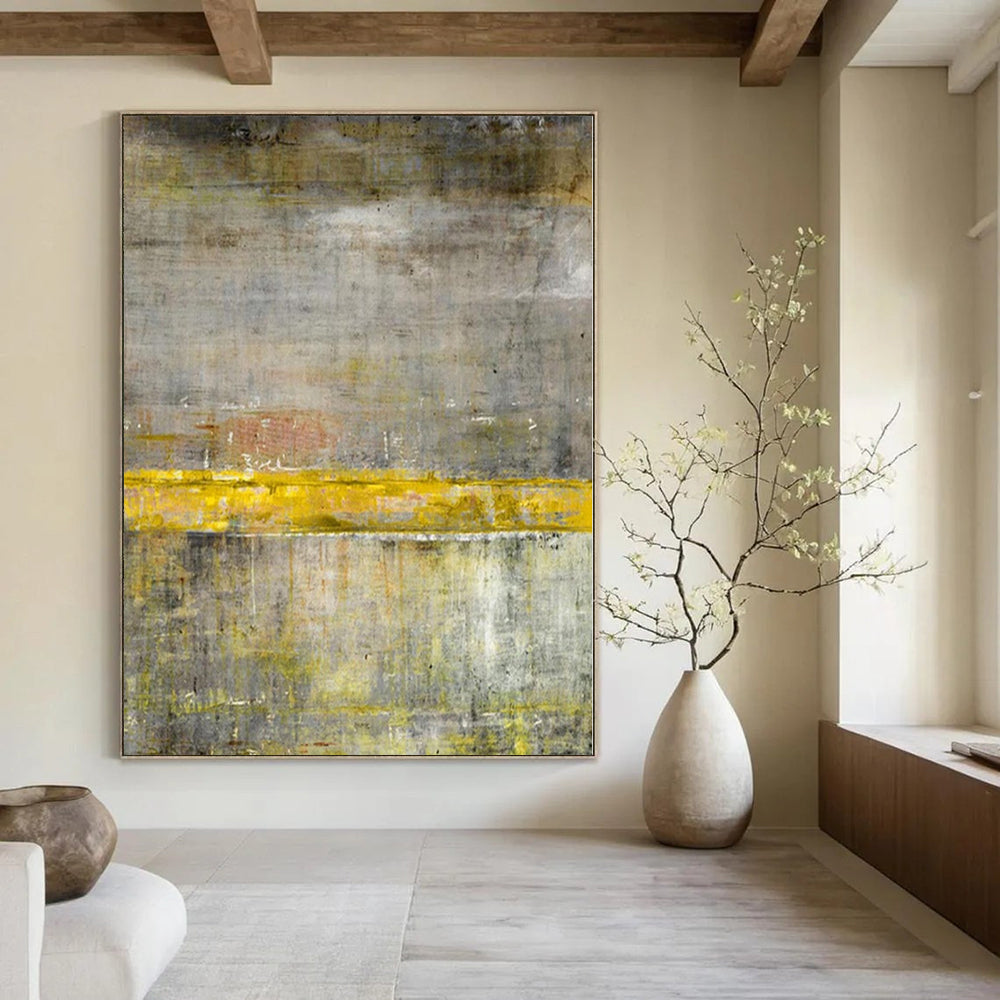 Drawn to the raw, edgy feel of lofts, the artist paired cool grays with a striking yellow stripe. They used rough, textured strokes to mimic concrete walls and added the yellow as a bold, energetic contrast. The process was about capturing the industrial soul – embracing imperfections, letting the paint drip, and creating a sense of urban grit. This large piece is ideal for a loft - style apartment, bringing that warehouse - turned - home vibe to life. Hang it, and let the artist’s ode to industrial aesthetics transform your space, as if the city’s raw energy is pulsing through the canvas. Packaging: Each artwork is professionally rolled and secured in a durable hard-shell tube for safe transit with a 2–3 inch white border around the painting for easy stretching or framing at your local shop. Delivery Timeline: Expect your painting within 7–12 business days including 3–5 days for handcrafting by our artists and 5–7 days for worldwide delivery via UPS or FedEx with a tracking number provided immediately upon shipping.