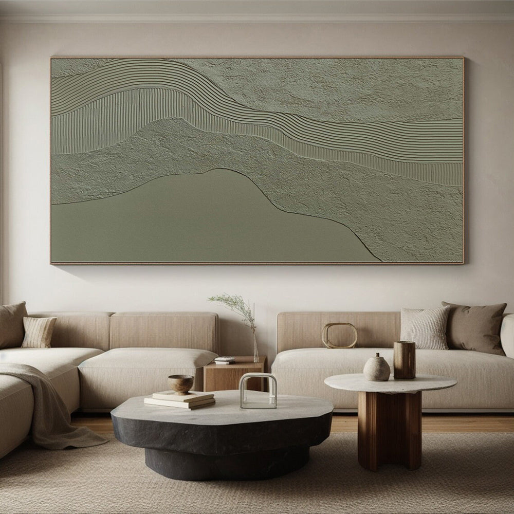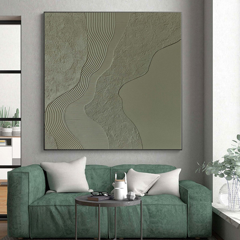 Inspired by the simplicity and elegance of minimalist design and the organic form of waves, the artist created this textured piece. They used a palette of muted greens, applying paint in thick, textured layers to create a sense of movement and depth. The process was about balancing simplicity with tactile complexity, much like the balance in a minimalist hallway. Each texture and curve was placed with intention, creating a visual rhythm that can guide you through the space. This large - scale artwork is ideal for a minimalist - inspired hallway, where it can add a touch of artistic texture without clutter. Hang it, and let the artist’s exploration of texture and waves turn your hallway into a journey through a minimalist, yet tactile, landscape, as if each wave is a step forward in a serene, artistic path.