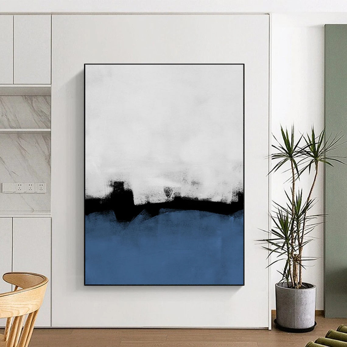 Monochromatic Black, White & Blue Abstract Painting, Perfect for Modern Office & Sleek Hallway LargeART1964