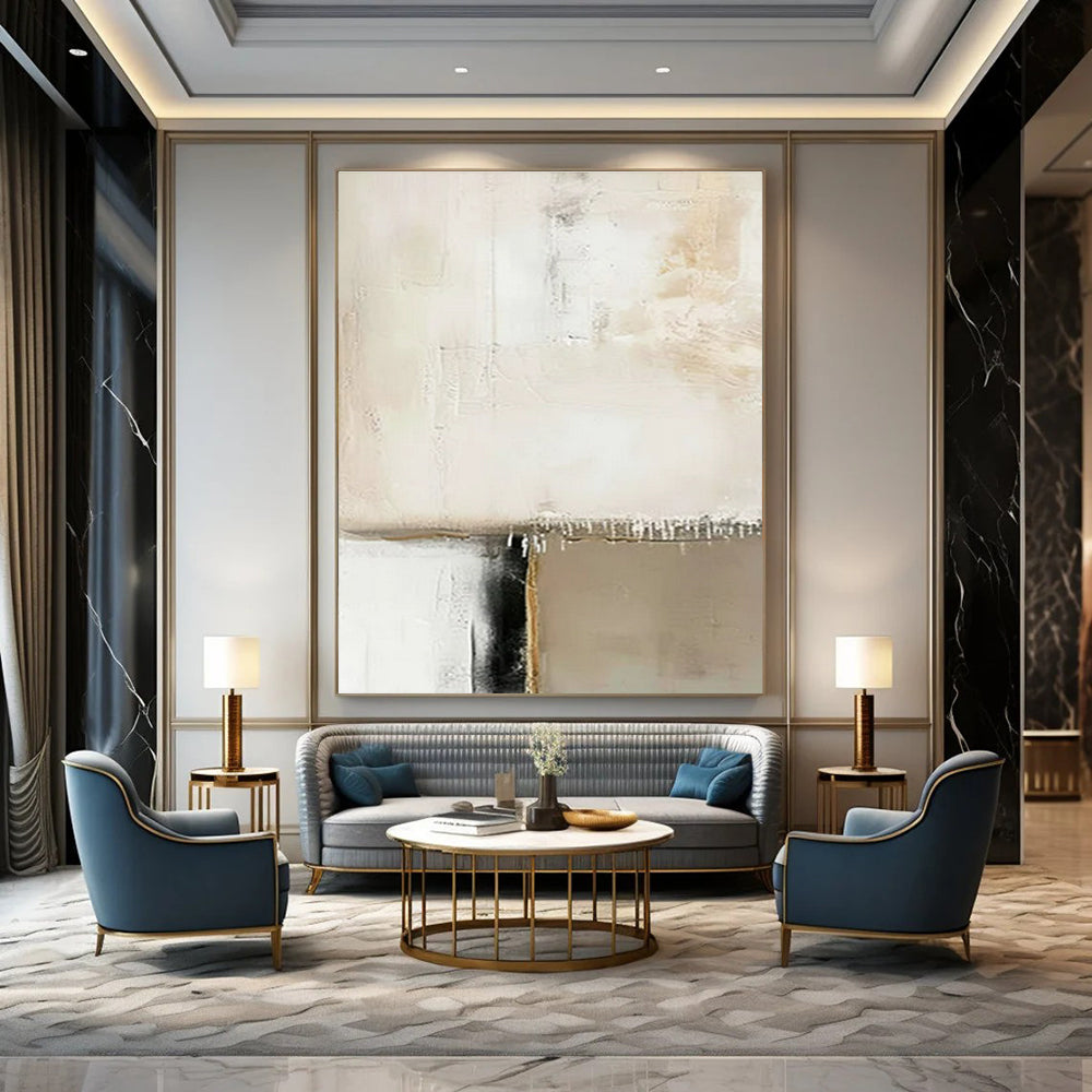 Inspired by the way light hits modern architecture at dusk, the artist mixed whites, blacks, and golds. They applied paint in thin, overlapping layers, letting the gold peek through like a hidden sunset. The black lines act as bold separators, guiding the eye across the white expanse. Creating this, they wanted to evoke the mystery of a city at night, with glimmers of luxury. Hang it in a contemporary hallway to make a stylish first impression or an art - lover’s study to spark deep, visual conversations. It’s a tribute to urban elegance, a painting that whispers tales of city lights and sophisticated nights. Packaging: Each artwork is professionally rolled and secured in a durable hard-shell tube for safe transit with a 2–3 inch white border around the painting for easy stretching or framing at your local shop. Delivery Timeline: Expect your painting within 7–12 business days including 3–5 days for handcrafting by our artists and 5–7 days for worldwide delivery via UPS or FedEx with a tracking number provided immediately upon shipping.