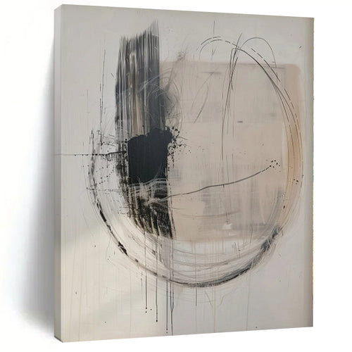 Large - Scale Minimalist Black - White Abstract Acrylic for Modern Living Room LargeART0274