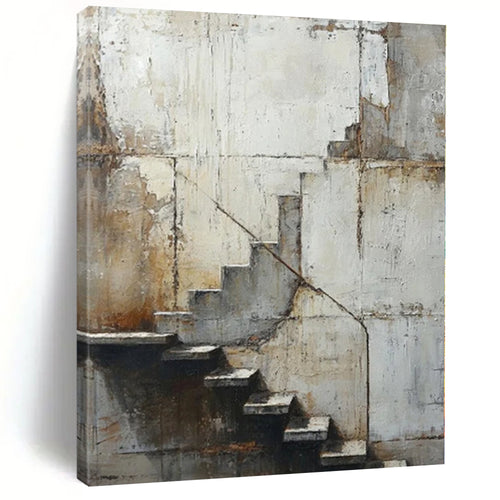 Oversized Rustic Staircase Abstract Acrylic for Industrial - Style Home Office & Art - Themed Restaurant LargeART0339