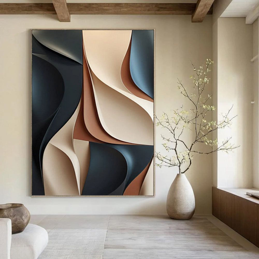 Drawn to the beauty of minimalist sculpture, the artist created a 3D - like effect with neutral, curved shapes. The goal was to add a touch of modern artistry to any space. Ideal for a modern foyer, making a bold first impression, or a contemporary art gallery’s display, showcasing innovative texture. During creation, the artist experimented with layering and shaping—each curve carefully crafted to create depth and interest, like a sculptural masterpiece translated onto canvas.