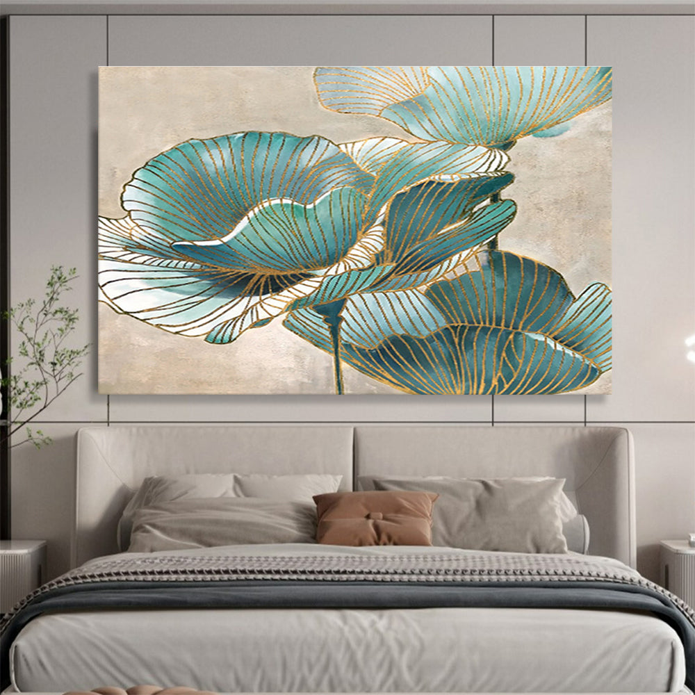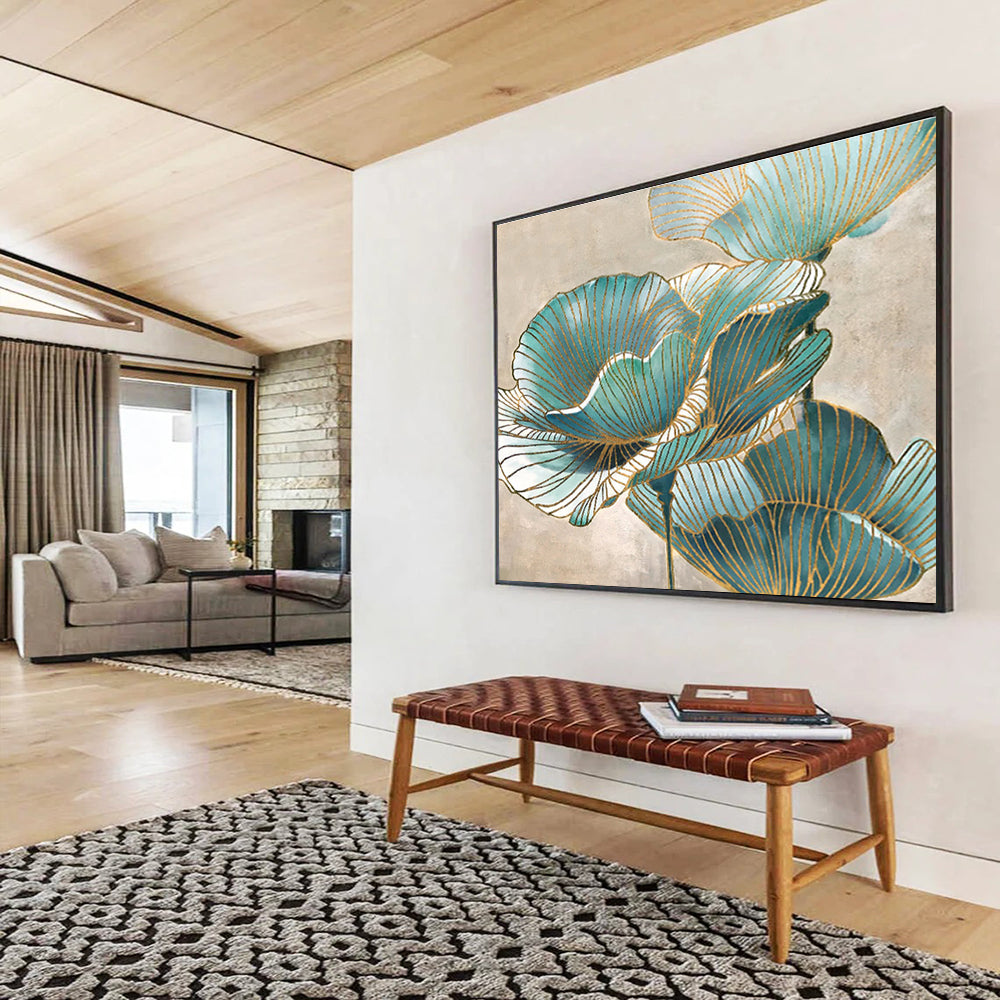 The artist found beauty in a garden’s blue flowers, imagining how gold details could enhance their delicate forms. They aimed to “paint that elegant, floral - gold fusion”. Using soft blue hues and intricate gold lines, they created a refined and artistic piece. Ideal for a bedroom, adding a touch of romantic elegance, or a dressing room, enhancing the feminine and luxurious vibe. It’s a floral - gold fusion’s beauty, ready to charm your space.