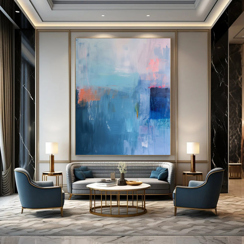 Drawn to the calm of the ocean at dusk, the artist used various blues to create a serene, abstract seascape. The hints of orange and pink add a touch of the setting sun’s glow. It’s perfect for a coastal home office, bringing the sea’s tranquility, or a minimalist living room, adding a subtle, artistic element. The artist sat by the ocean at sunset, feeling the peace, then translated that into the soft brushstrokes. Each blue shade is a wave of calm, inviting you to relax. Hang it and let your space be washed over by the quiet beauty of the sea. Packaging: Each artwork is professionally rolled and secured in a durable hard-shell tube for safe transit with a 2–3 inch white border around the painting for easy stretching or framing at your local shop. Delivery Timeline: Expect your painting within 7–12 business days including 3–5 days for handcrafting by our artists and 5–7 days for worldwide delivery via UPS or FedEx with a tracking number provided immediately upon shipping.