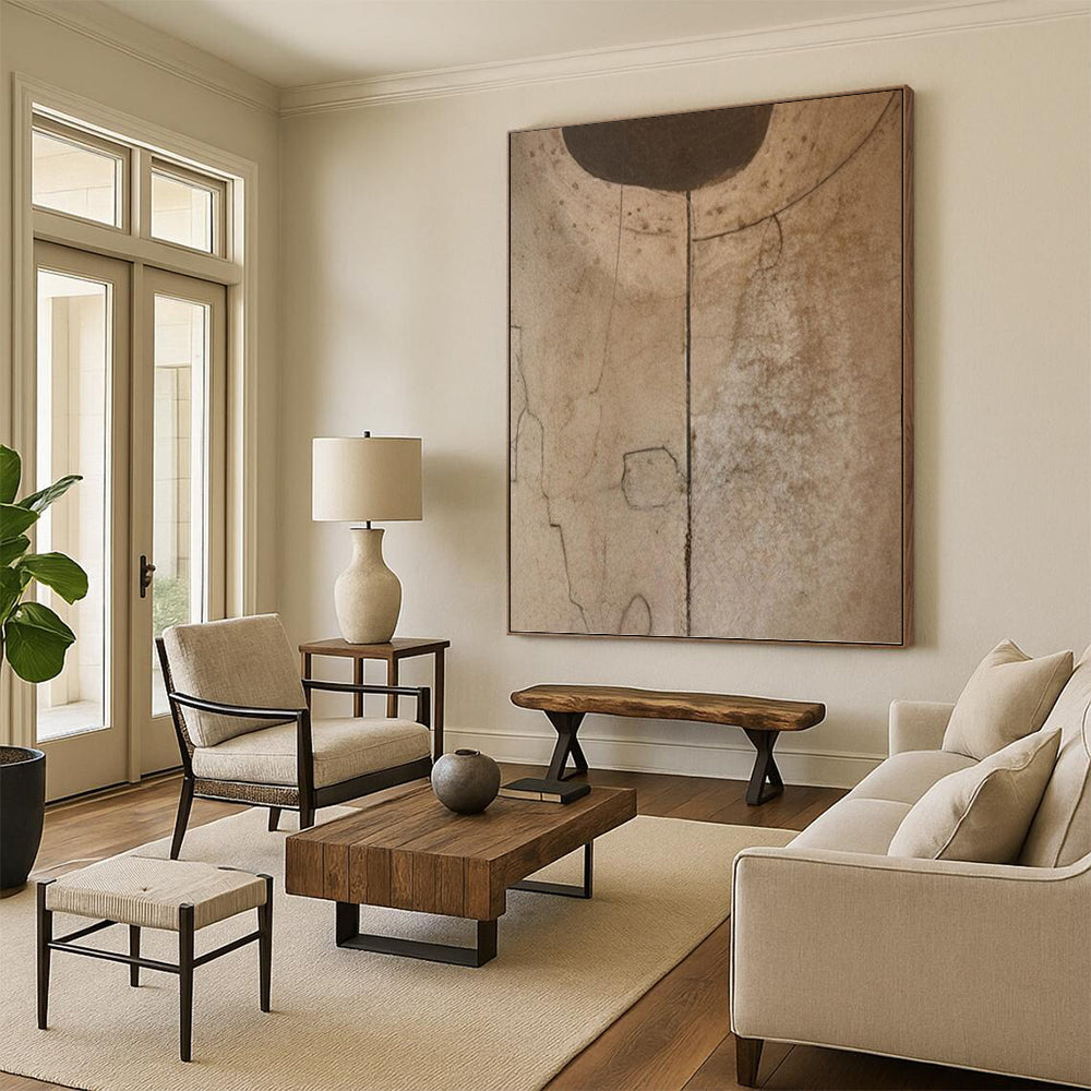 This minimalist piece uses brown tones and abstract shapes to create a contemplative mood. The artist, inspired by geometric forms and neutral palettes, aimed to balance simplicity and depth. Ideal for a contemporary living room or a minimalist bedroom. Let these shapes bring calm—own a piece of artistic balance.