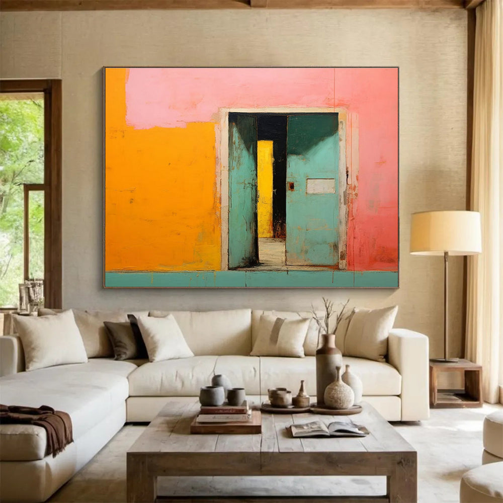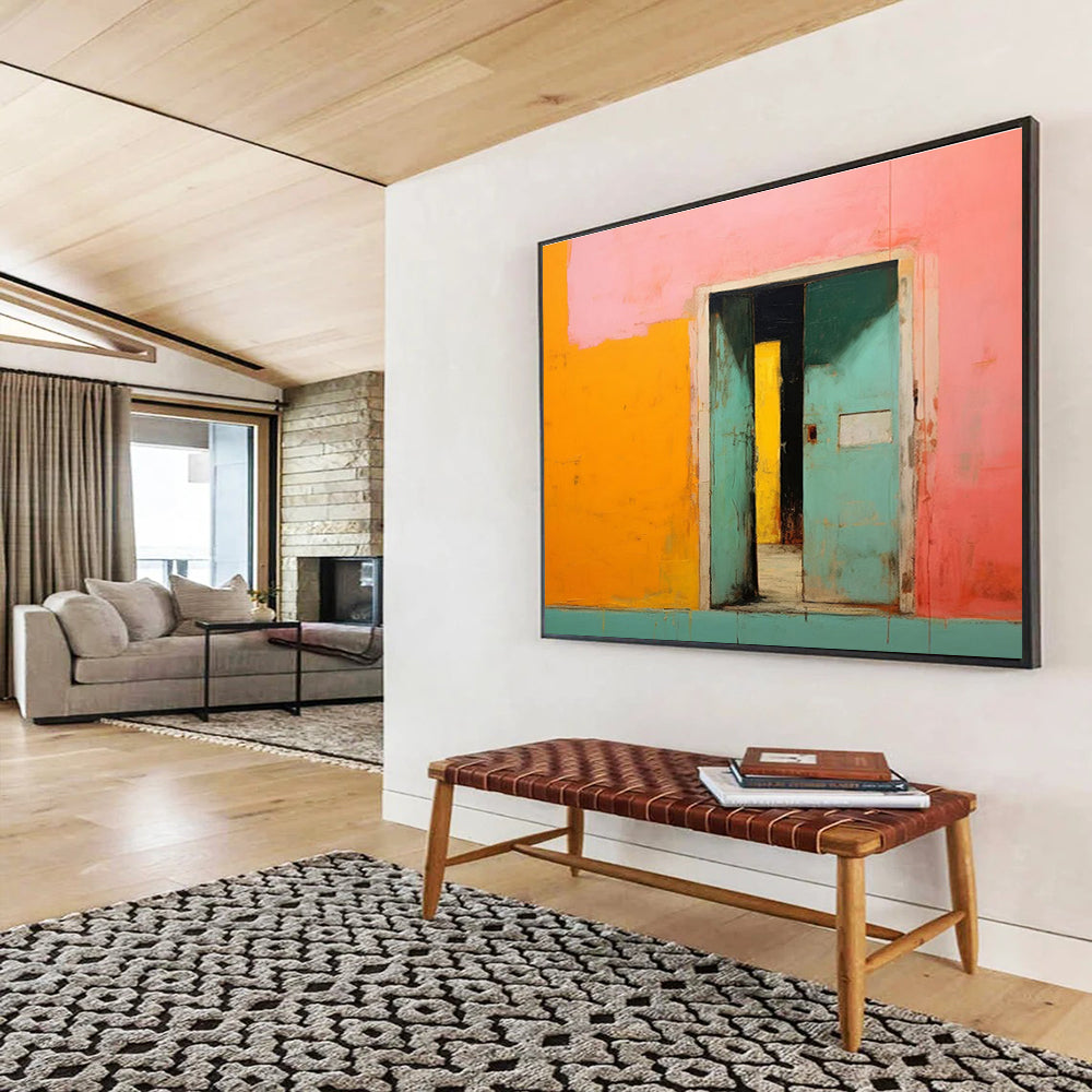 The artist was walking through a colorful neighborhood when a weathered doorway caught their eye. The clash of bright pink, orange, and teal spoke to the idea of transition—from one space to another, one mood to the next. Using bold acrylic layers, they recreated that sense of intrigue. It’s perfect for a modern entryway, greeting guests with artistic energy, or a creative studio, where the vibrant colors can spark new ideas. The process involved layering thick paint to mimic the door’s texture, letting the colors bleed and blend slightly, capturing the raw, lived - in feel of the real doorway. Every stroke is a nod to the beauty found in everyday, overlooked scenes, turning a simple threshold into a portal of artistic wonder.