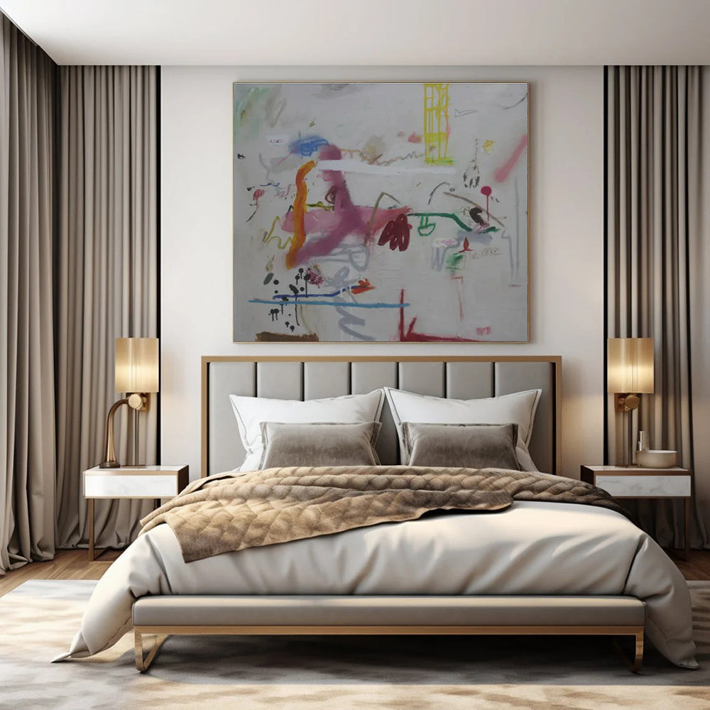 The artist thrives on controlled chaos. They started by splashing a rainbow of colors across the canvas, then added lines, drips, and scribbles to create a sense of organized mayhem. The process was about embracing the unexpected – letting the paint run, then reining it in with bold strokes. They wanted to capture the energy of a bustling creative space. Hang it in a trendy café to match the lively atmosphere, or an artistic studio loft to fuel creative fire. It’s a visual representation of creative energy in full flow, a chaotic yet captivating piece that proves beauty can come from letting go. Packaging: Each artwork is professionally rolled and secured in a durable hard-shell tube for safe transit with a 2–3 inch white border around the painting for easy stretching or framing at your local shop. Delivery Timeline: Expect your painting within 7–12 business days including 3–5 days for handcrafting by our artists and 5–7 days for worldwide delivery via UPS or FedEx with a tracking number provided immediately upon shipping.