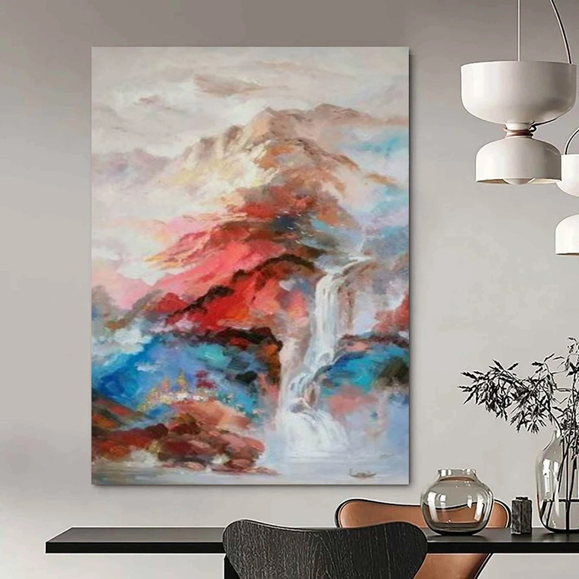 Escape to a dreamscape with this colorful abstract landscape. The artist, a seasoned hiker of mist - shrouded mountains, sought to capture nature’s essence, not just its appearance. Layers of fiery reds depict dawn - kissed peaks, cool blues illustrate cascading waterfalls, blending into a serene, otherworldly vision. Painted over months with a mix of gentle brushstrokes and bold color blocks, it serves as a portal to tranquility. Ideal for bedrooms, lulling you into a fantasy realm, and spa areas, enhancing relaxation, it’s nature’s magic reborn in acrylic, to soothe and inspire. Packaging: Each artwork is professionally rolled and secured in a durable hard-shell tube for safe transit with a 2–3 inch white border around the painting for easy stretching or framing at your local shop. Delivery Timeline: Expect your painting within 7–12 business days including 3–5 days for handcrafting by our artists and 5–7 days for worldwide delivery via UPS or FedEx with a tracking number provided immediately upon shipping.