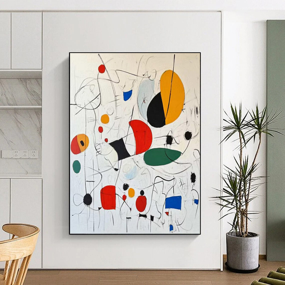 Driven by a love for vibrant colors and playful forms, the artist let their creativity run wild, arranging these shapes like a whimsical dance. Each color was chosen to evoke joy and energy. It works perfectly in a family room, adding a lively and artistic touch to your gatherings, or a child’s playroom, where its colorful design can inspire young imaginations. Hang it and let the colorful shapes fill your space with a sense of playful creativity.