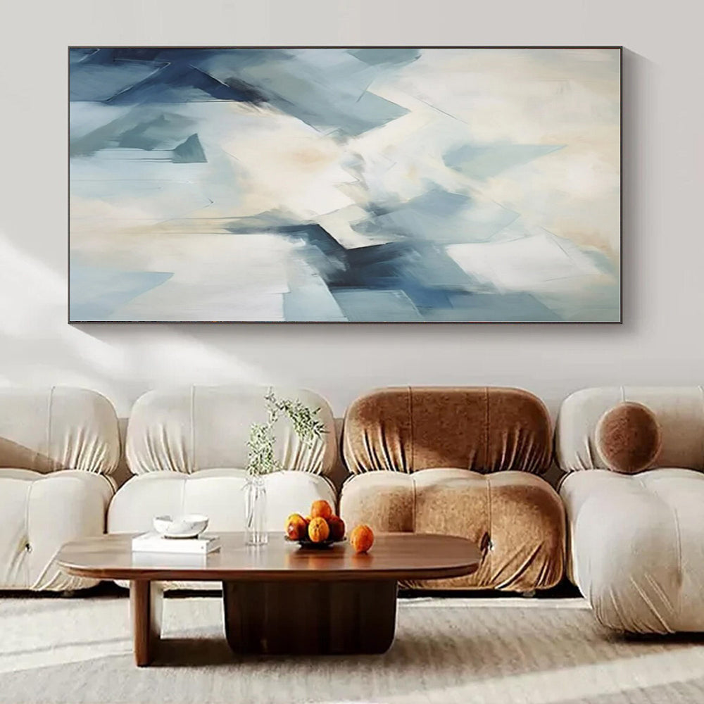 Inspired by the clean lines of modern architecture, the artist used varying shades of blue to create angular shapes that seem to shift and move. They aimed to capture the feeling of a cool, crisp morning in a city. It’s perfect for a minimalist studio, keeping the space feeling open yet inspired, or a modern café, where its sleek lines can complement contemporary decor. The creation process was precise, with the artist carefully mapping out each shape, but also allowing for subtle variations to keep it from feeling too rigid. This painting is a nod to modern design, with a splash of artistic fluidity. Packaging: Each artwork is professionally rolled and secured in a durable hard-shell tube for safe transit with a 2–3 inch white border around the painting for easy stretching or framing at your local shop. Delivery Timeline: Expect your painting within 7–12 business days including 3–5 days for handcrafting by our artists and 5–7 days for worldwide delivery via UPS or FedEx with a tracking number provided immediately upon shipping.