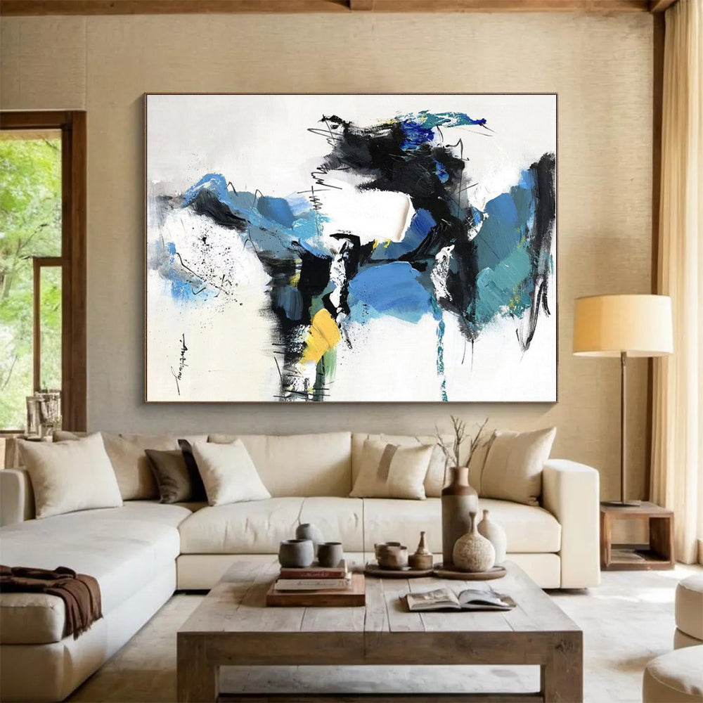 Inspired by the energy of bold colors, the artist mixed blues, blacks, whites, and pops of yellow on a large canvas, using expressive, free - flowing brushstrokes. They wanted to create a piece that grabs attention. In an art gallery, this artwork stands out as a modern, energetic work. In a vibrant retail space, it adds a lively, artistic touch, drawing customers in. The artist let their creativity flow, building up colors and textures spontaneously, ensuring the large size and bold design make a memorable impression. Packaging: Each artwork is professionally rolled and secured in a durable hard-shell tube for safe transit with a 2–3 inch white border around the painting for easy stretching or framing at your local shop. Delivery Timeline: Expect your painting within 7–12 business days including 3–5 days for handcrafting by our artists and 5–7 days for worldwide delivery via UPS or FedEx with a tracking number provided immediately upon shipping.