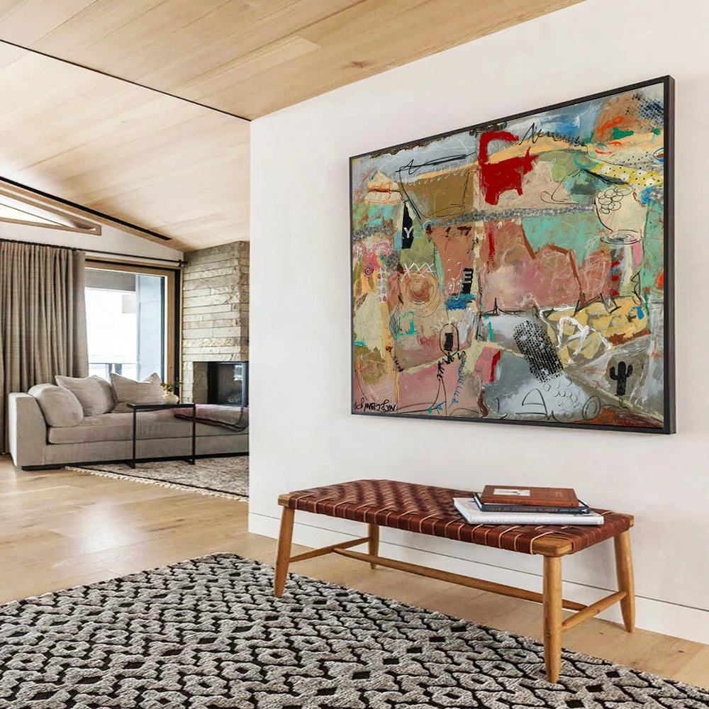 Featuring earthy tones and shapes reminiscent of a desert landscape, this painting draws from the color field style of Georgia O'Keeffe’s desert works. The artist spent time in the desert, observing the unique shapes and colors, then translated that into this abstract acrylic piece. Hang it in a Southwest - themed room to enhance the regional charm or an art gallery to showcase landscape - inspired abstraction. Bring the spirit of the desert into your space with this evocative artwork.