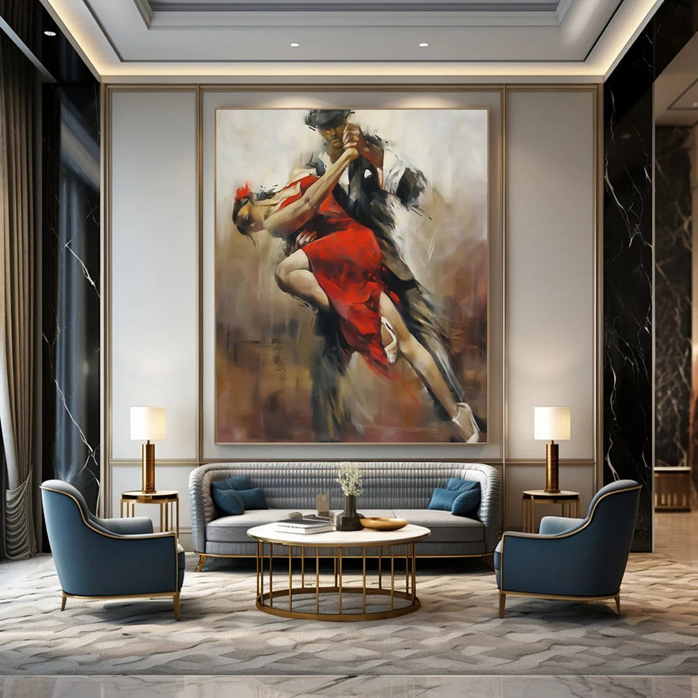Featuring a dancer in a red dress, this piece uses bold strokes to convey energy. The artist, inspired by the power of red and dynamic movement, created a striking composition. Ideal for a modern dance studio or a vibrant bedroom. Let this red - dress dance ignite your space—own a slice of artistic passion.