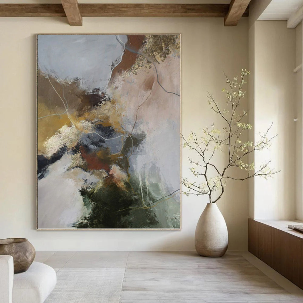 “Earth - Toned Abstract Fusion” Abstract Painting on Canvas, Modern Lounge Decor DKH1004