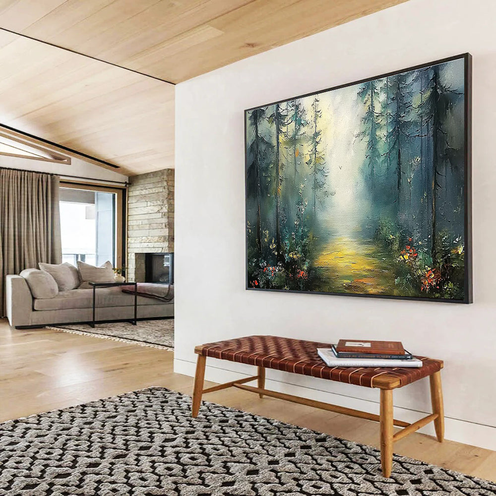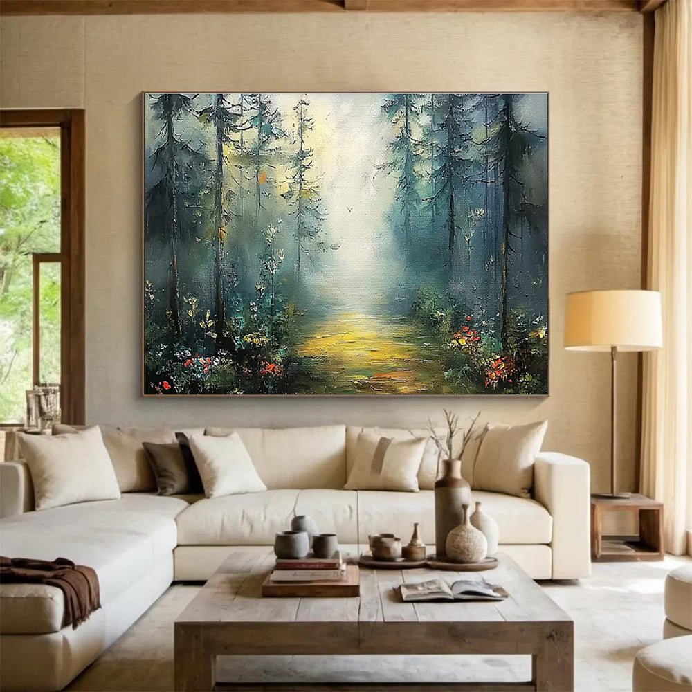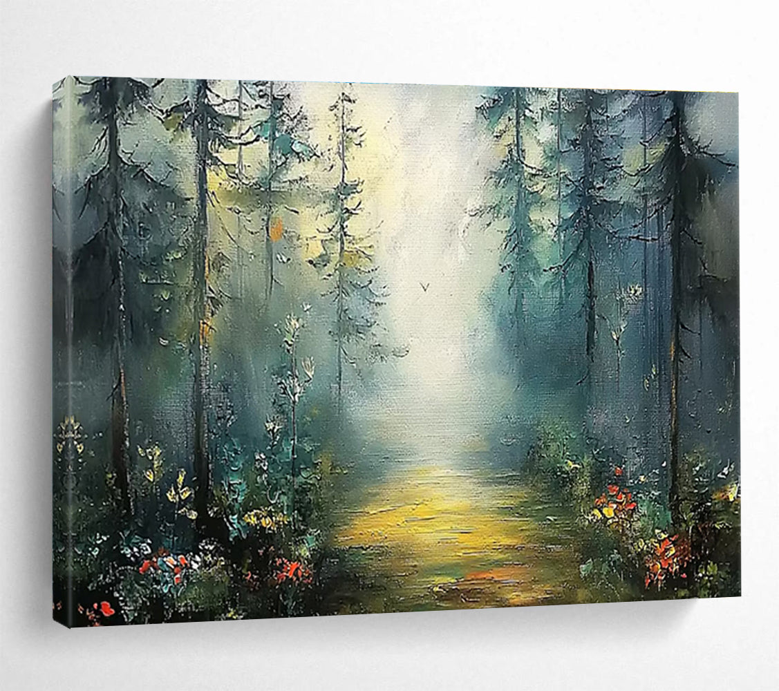 Forest Path “Misty Glow” Painting on Canvas, Ethereal Landscape Art DKH871