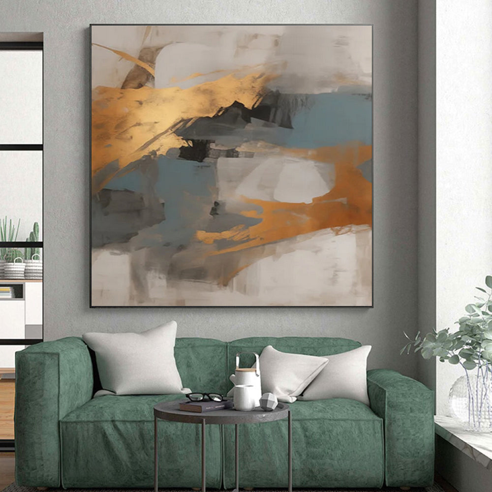 Gold - Blue - Gray Abstraction is the artist’s ode to the meeting of land and sea. Inspired by the golden sunlight hitting a coastal cliffside with the blue ocean in the background, they used a mix of gold, blue, and gray to create a sense of depth and serenity. The brushstrokes are layered to mimic the texture of the cliff and the movement of the water. In a coastal mansion, it complements the seaside views, bringing the outside in. In a corporate boardroom, it adds a touch of calm and sophistication, promoting productive discussions. The artist focused on capturing the essence of the coast, not just the visual but the emotional feel. It’s a piece that transports you to the seaside, a daily reminder of calm and beauty. Packaging: Each artwork is professionally rolled and secured in a durable hard-shell tube for safe transit with a 2–3 inch white border around the painting for easy stretching or framing at your local shop. Delivery Timeline: Expect your painting within 7–12 business days including 3–5 days for handcrafting by our artists and 5–7 days for worldwide delivery via UPS or FedEx with a tracking number provided immediately upon shipping.